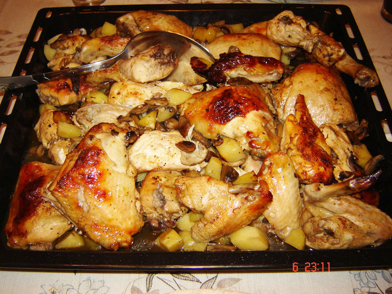 1 kg si jumatate carne de pui (pulpe, piept, aripioare)