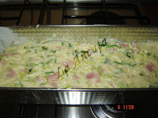 Se taie prazul marunt si se caleste in 2 linguri de ulei, pana se inmoaie putin.