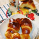 Aluatul este acelasi cu cel folosit la cornurile pufoase. Eu am framantat si de aceasta data la robot si mi-am usurat mult munca :).