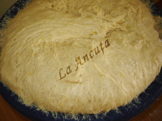Am acoperit apoi aluatul si l-am lasat la dospit ~ 1 ora si jumatate.