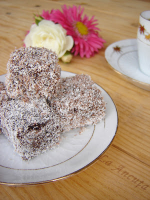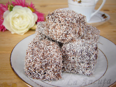 Dam fiecare bucatica prin glazura racita iar apoi o tavalim bine prin nuca de cocos. Putem sa folosim si nuca macinata.