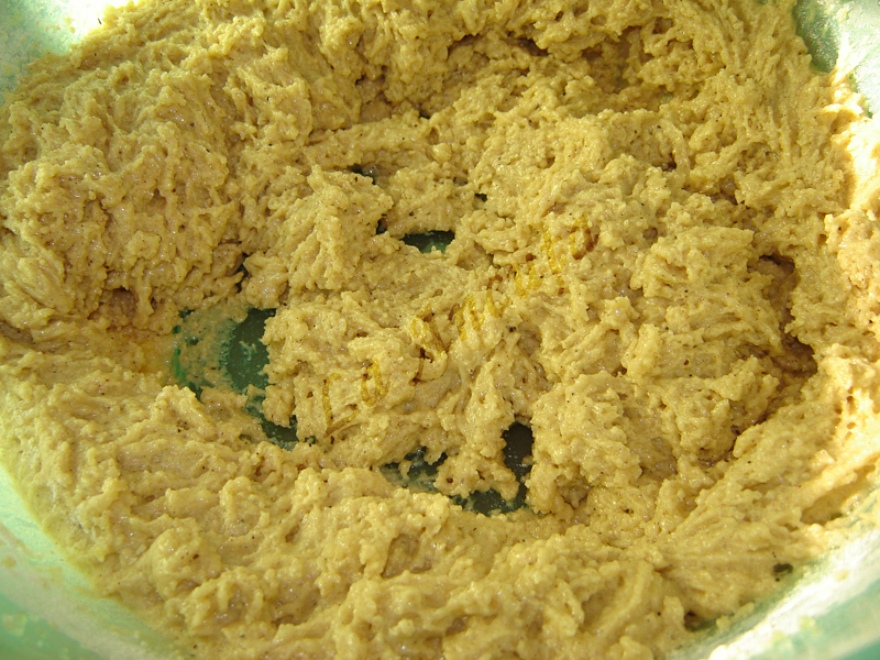 Amestecam faina cu praful de copt, scortisoara si cuisoarele si le incorporam in crema de oua si unt.