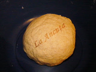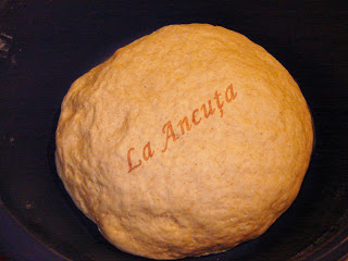 Acoperim cu un prosop de bucatarie si lasam la crescut, la loc caldut, pana isi dubleaza volumul.