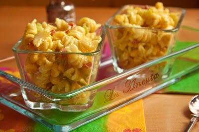 Fierbem pastele in apa cu sare conform instructiunilor de pe ambalaj. Dupa ce s-au fiert le scurgem si le trecem prin jet de apa rece.