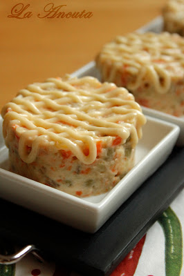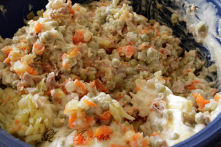 Adaugam apoi maioneaza (preparata dupa reteta preferata a fiecaruia) si amestecam pana se omogenizeaza.