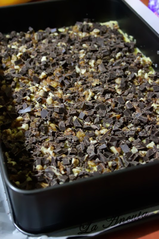 Deasupra presaram ciocolata taiata bucatele sau data pe razatoarea cu ochiuri mari.
