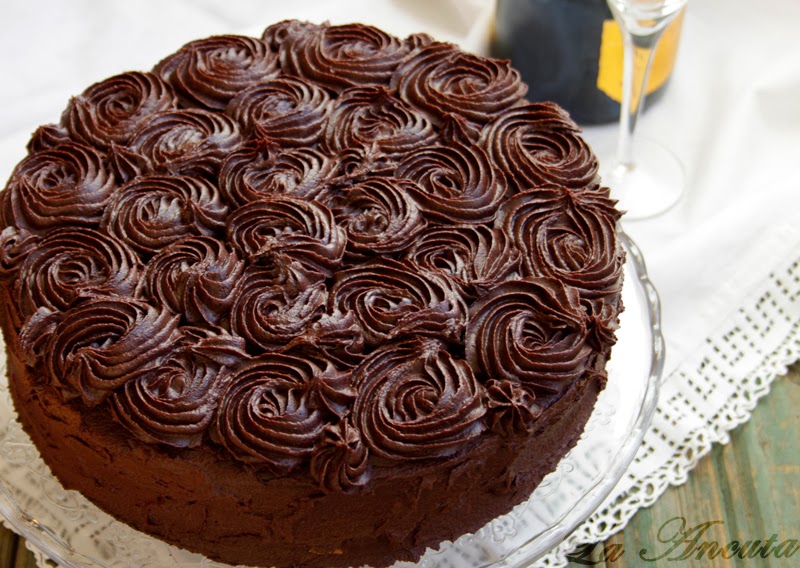 Pe un platou asezam o foaie in jurul careia montam inelul de tort. Peste foaie intindem jumatate din crema de ciocolata, acoperim cu cea de-a doua foaie si restul de crema. Acoperim cu ultima foaie de tort si dam la frigider pentru 2 ore.