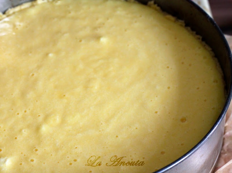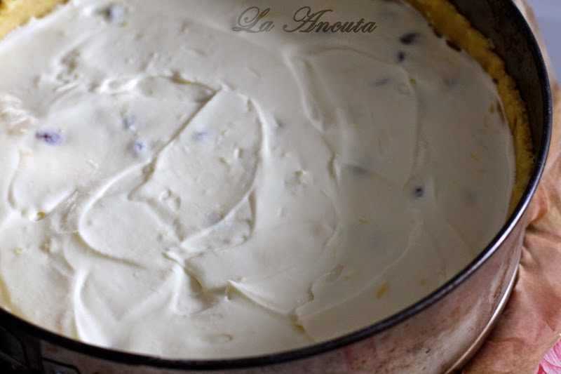 Scoatem tava din frigider si turnam crema de branza.
