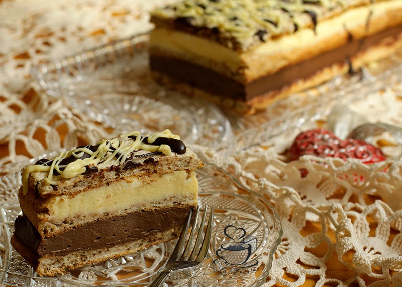 Imi plac prajiturile cremoase si tocmai mi se facuse pofta de o astfel de prajitura. Am ales sa fie cu crema de vanilie si ciocolata, ca sa impacam toate gusturile :). Merge foarte bine intr-o zi de sarbatoare, dar si intr-o zi oarecare, fara un motiv anume. Sau motiv ar fi… pofta de ceva dulce 🙂