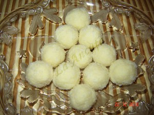 Ingrediente: 150 g lapte praf 125 g zahar pudra 100 g unt moale 100 g nuca de cocos + 20...