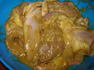 Carnea se spala, se portioneaza si se condimenteaza. Adaugam carnea peste marinata si amestecam bine.