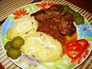 Noi am servit cu muraturi si galuste de mamaliga cu ciuperci.