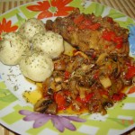 Pulpa de curcan marinata, cu sos de rosii
