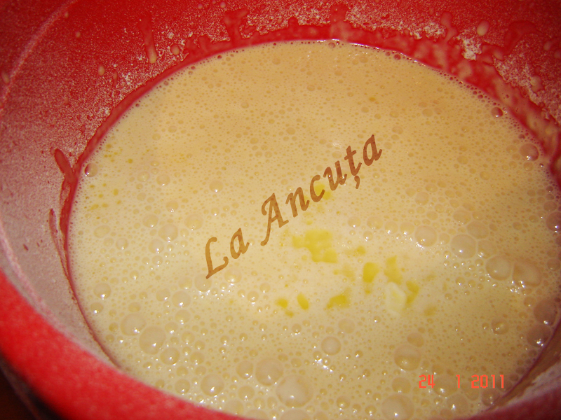 Separam ouale. Galbenusurile le mixam bine cu vanilia, un praf de sare si zaharul.