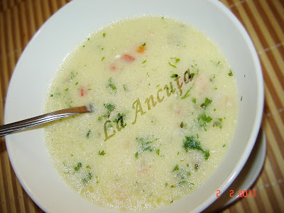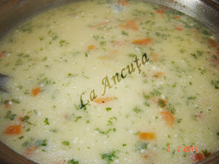 Dam apoi oala deoparte si turnam galbenusurile cu smantana amestecand la suprafata ciorbei.