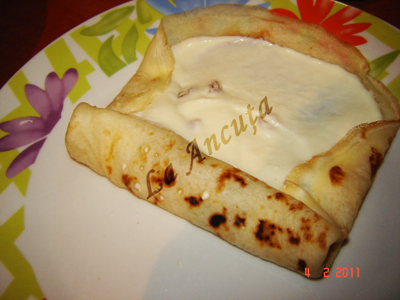Pentru cam am tot discutat pe Bucataras.ro despre clatitele banatene, am hotarat sa fac si eu. Reteta o am de pe blogul Laurei Laurentiu. Au rezultat niste clatite foarte bune, iar Dragos a fost foarte incantat :).