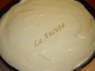 Punem aluatul in tava rotunda (26cm) tapetata cu hartie de copt.