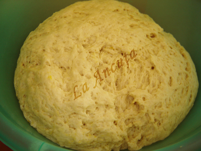 Acoperim cu un prosop si lasam sa dospeasca, pana isi dubleza volumul (~1 ora).