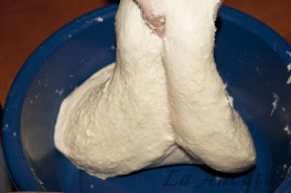 acoperim cu un prosop de bucatarie si il lasam la loc caldut pana isi dubleaza volumul (~1 ora si jumatate).