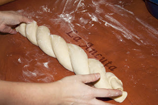 Rasucim cele doua suluri, iar cozonacul rezultat il vom aseza in tava tapetata cu hartie de