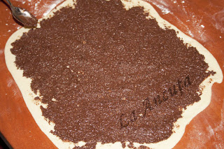 umplutura cu nuca si nivelam. Rulam foaia strans, pe partea mai lunga.