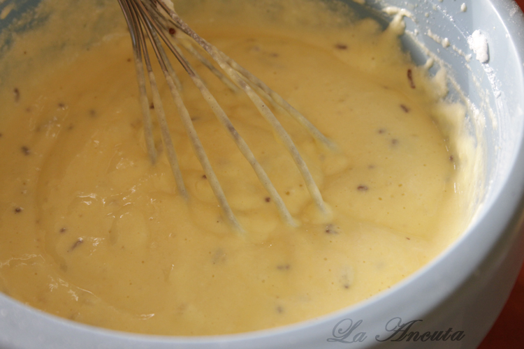 Amestecam usor cu telul pana se omogenizeaza.