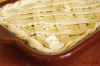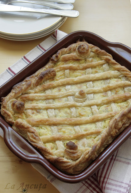 Din surplusul de aluat am taiat fasiute pe care le-am asezat deasupra, pe post de grilaj :).