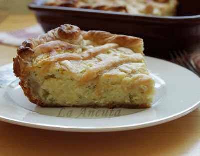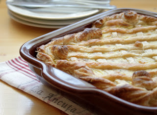 Am descoperit ca mai am in congelator o jumatate de pachet de foietaj. Din cauza lui s-a nascut aceasta tarta rapida si gustoasa.