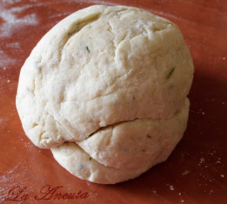 Rasturnam aluatul pe masa bine infainata si il impartim in 3 bucati egale. Din fiecare bucata formam cate un sul pe care apoi il taiem cu un cutit bine ascutit, in bucati de ~ 1 cm grosime.
