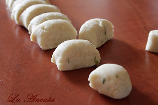 Pentru gnocchi amestecam toate ingredientele si framantam un aluat care nu se mai lipeste de mana.