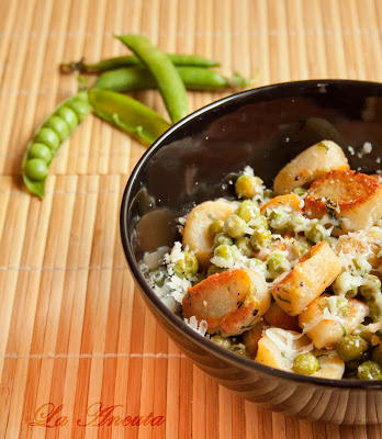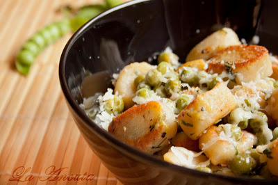 Gnocchi cu urda in sos de unt cu mazare