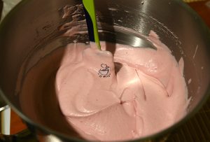 Separat mixam restul de frisca (350 ml) iar apoi adaugam ciocolata si amestecam usor cu o spatula.