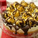 Rupem ciocolata bucati si o punem la foc mic impreuna cu 200 ml de smantana pentru frisca. Dam de pe foc si amestecam pana cand se omogenizeaza apoi adaugam gelatina hidratata si amestecam pana cand se dizolva. Lasam sa se raceasca.